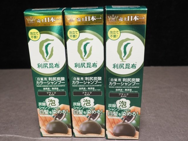 - D533【未開封品】利尻昆布 利尻炭酸カラーシャンプー 180g 3本セット 白髪用 黒/ブラック サスティ 白髪染 自然派 無香料 無添加 ノンシリ