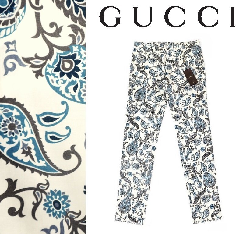 > ●28万新品◆50=M~L◆GUCCI グッチ ペイズリー柄 ストレッチパンツ アイボリー白tight fit 1円