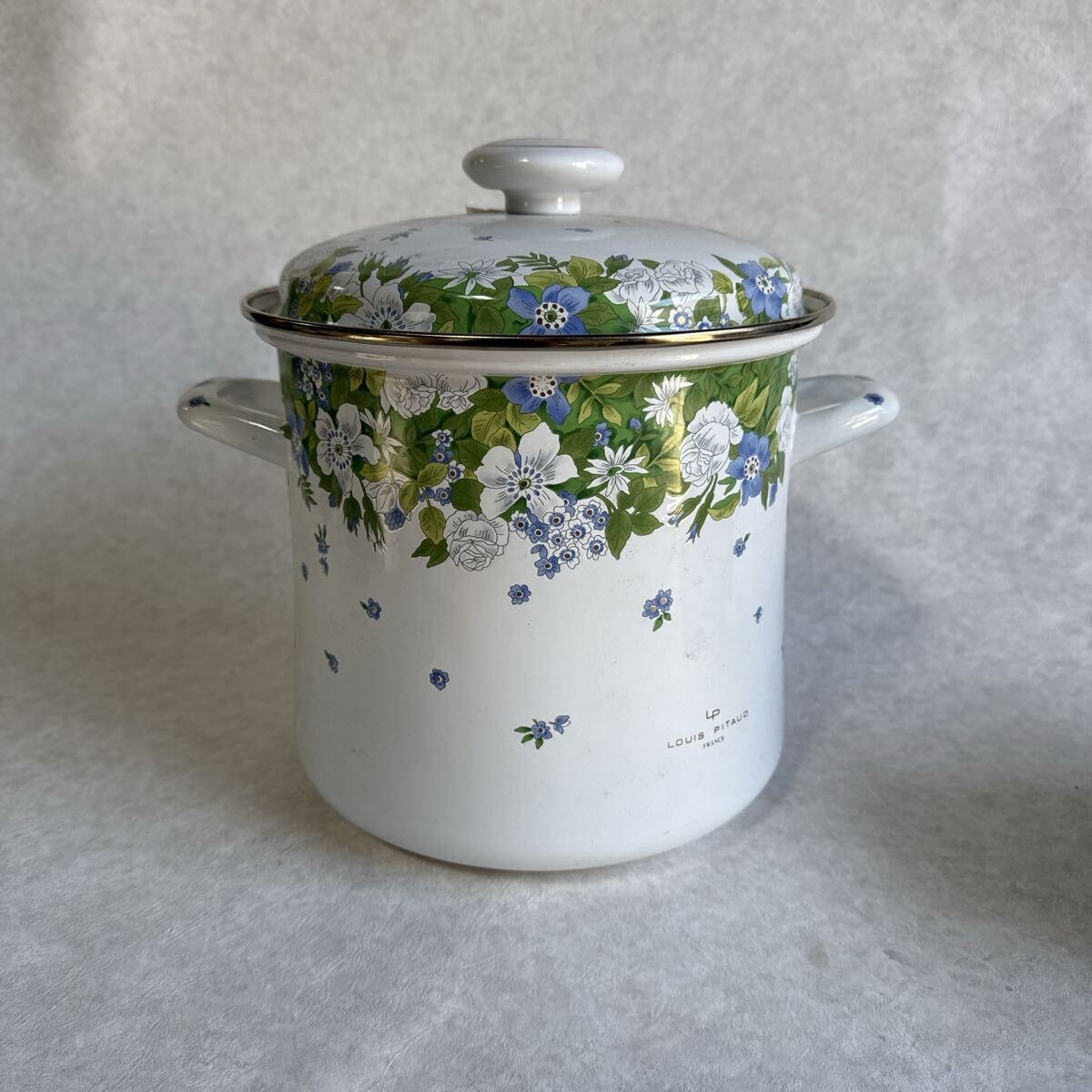 - 花柄ホーロー鍋 中型 蓋付き 昭和レトロ