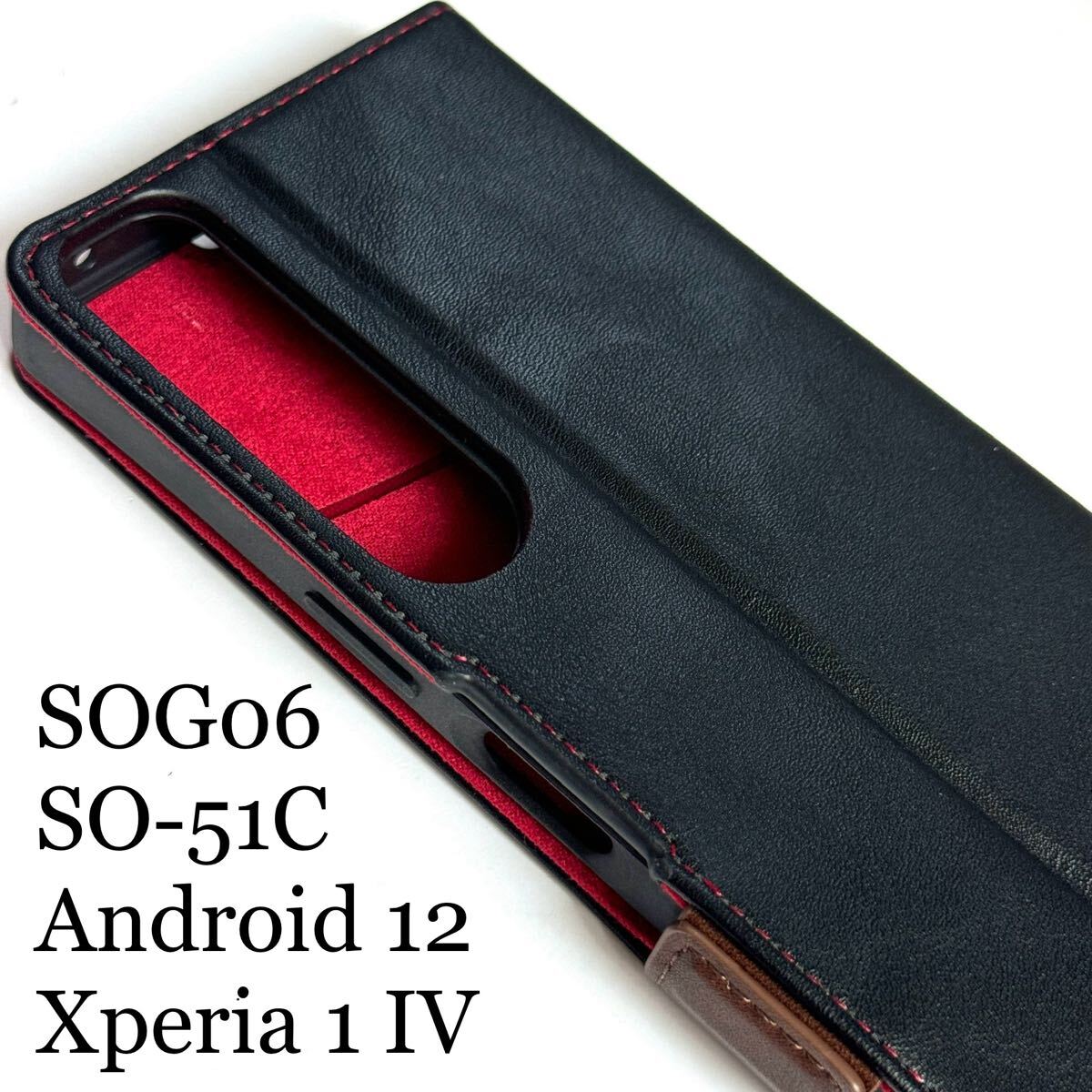 > Xperia 1 IV(SOG06/SO-51C/Android 12)用レザーケース★サイドマグネット付★スタンド機能付★カード入付★四角エアクッション付