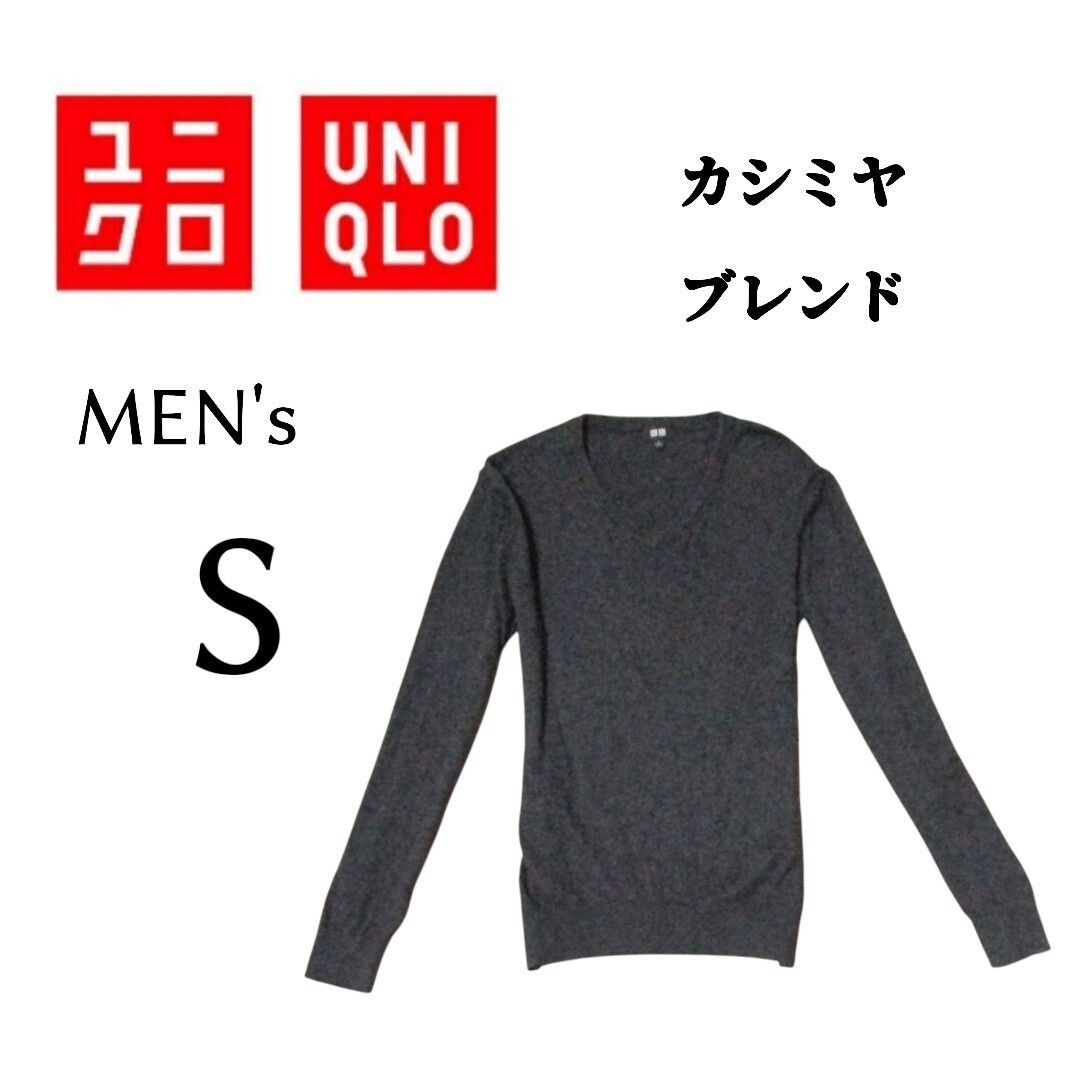 - 送料込み メンズSサイズ UNIQLOユニクロ コットンカシミヤVネックセーター gray 137009