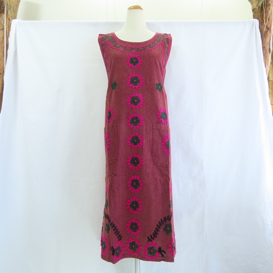 - 〓 新品 〓 エプロン ワンピース 〓 刺繍 エスニック アジアン インド綿 ドレス ガーデニング ウォッシュ加工 おしゃれ 〓A093