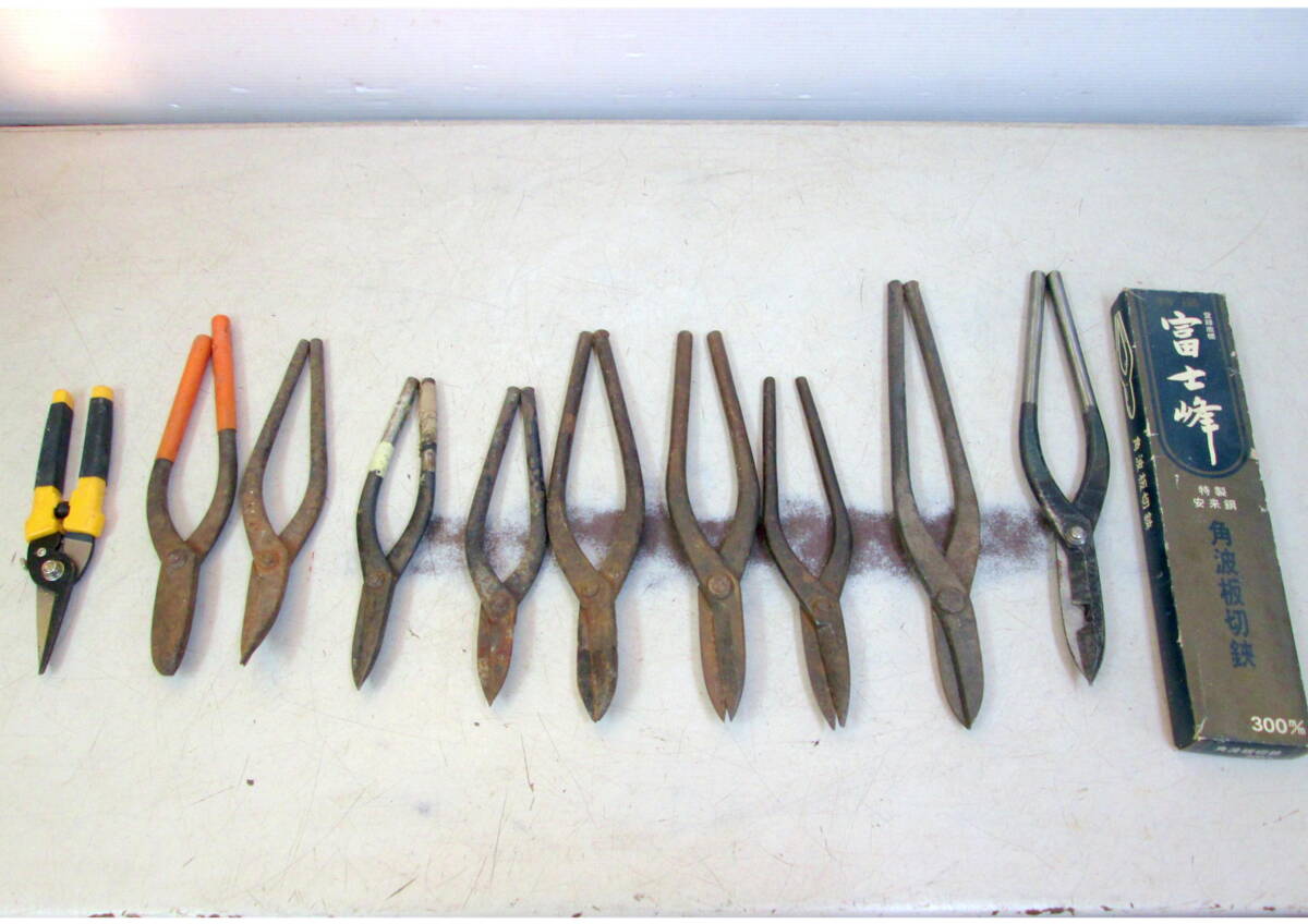 - 《510046》板金ハサミ ⑩ / 板金 波板 鋏 金切はさみ 直刃 角波 他【10点】トタン ブリキ 大工道具
