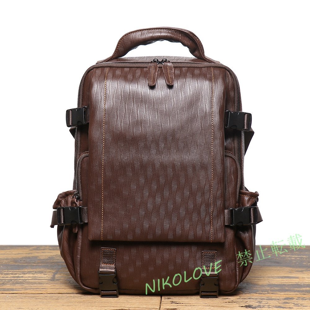 - ☆新品美品 リュック メンズ 本革 牛革 スクエア レザー 多機能 大容量 リュックサック バックパック ビジネスリュック コーヒー