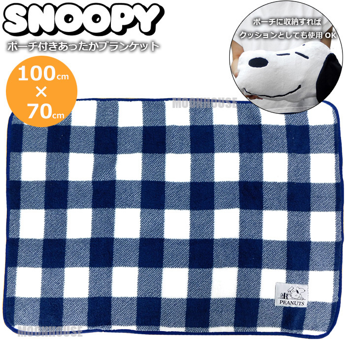 - 送料無料 新品 スヌーピー ひざ掛け ブランケット フェイスポーチ付き ひざかけ 膝掛け クッション SNOOPY 肩掛け レジャー アウトドア B■