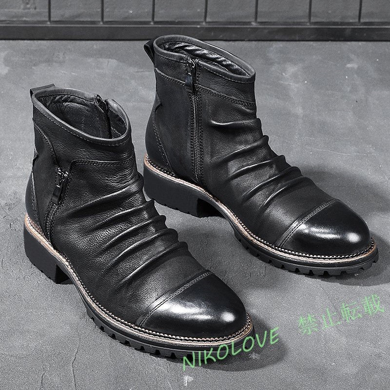 > ☆新品ブーツ メンズ ワークブーツ ショートブーツ エンジニアブーツ 革靴 おしゃれ 滑り防止 かっこいい 秋冬 黒色 2色
