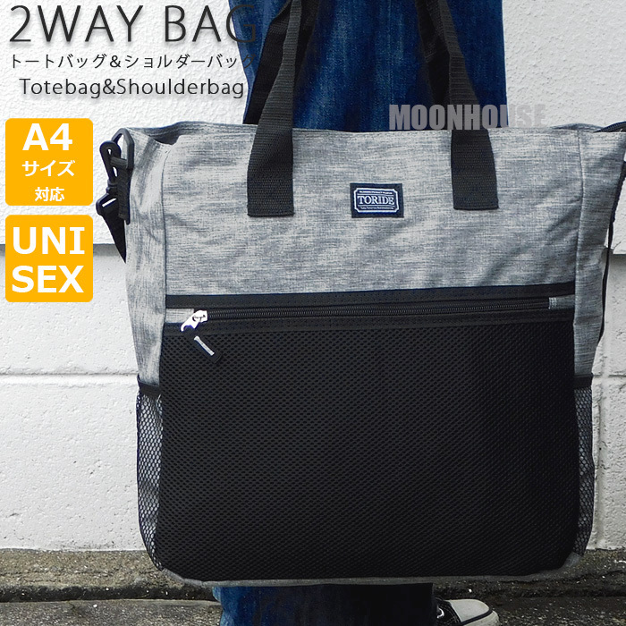 > 送料無料 大容量 2WAY トートバッグ メンズ レディース ショルダーバッグ マザーズバッグ レッスンバッグ 斜めがけ 肩掛け 新品 グレー■