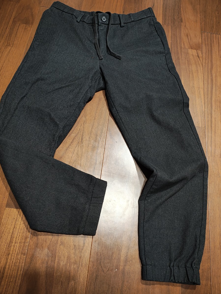 > ユニクロ ヘリンボーン織り生地 ジョガーパンツ イージーパンツ スリム サイズM メンズ 濃グレー