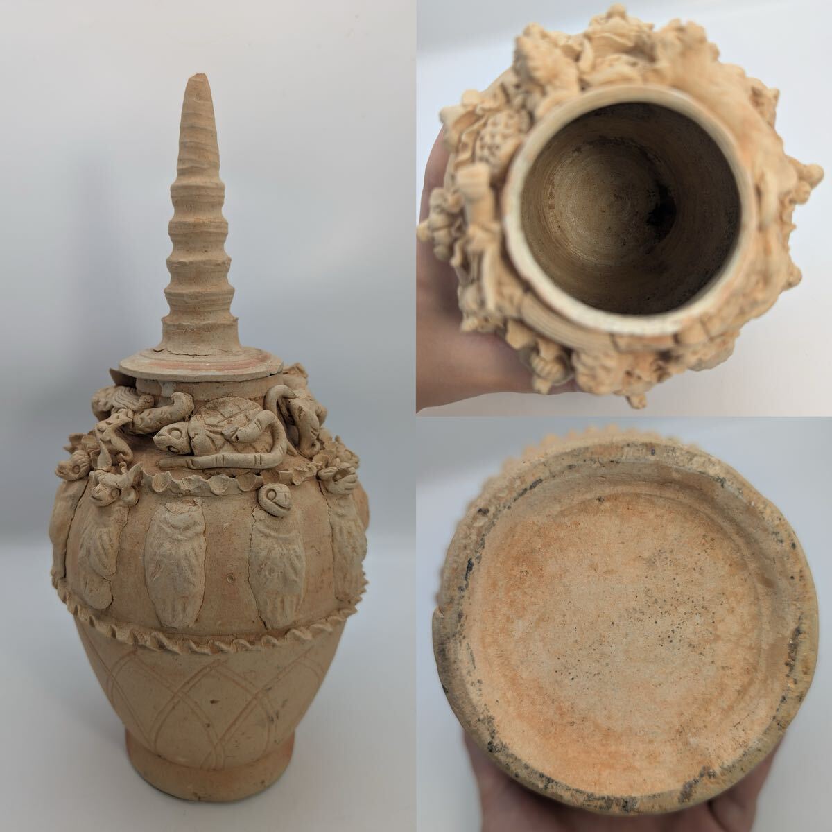 - 唐物 唐代堆塑舎利壺 時代物 花瓶 中国古玩 骨董品 壺 土器 陶磁器 古美術 初だし品