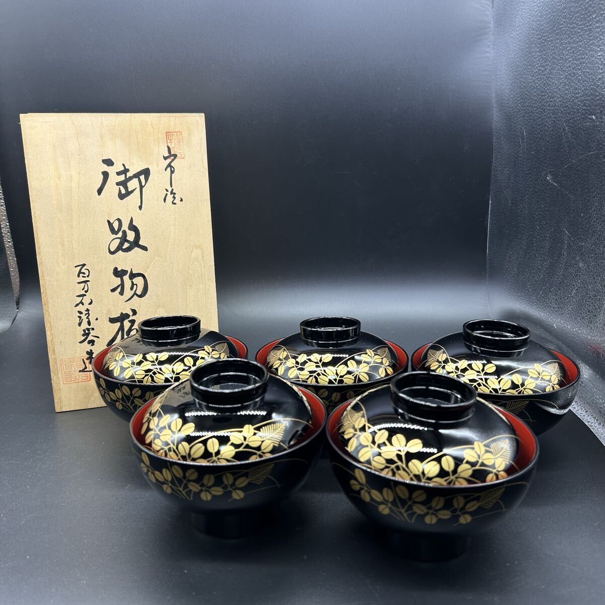 - 百万石漆器造 吸物椀 蓋付椀 お椀 汁椀 漆器 金彩 蒔絵 和食器 オ20
