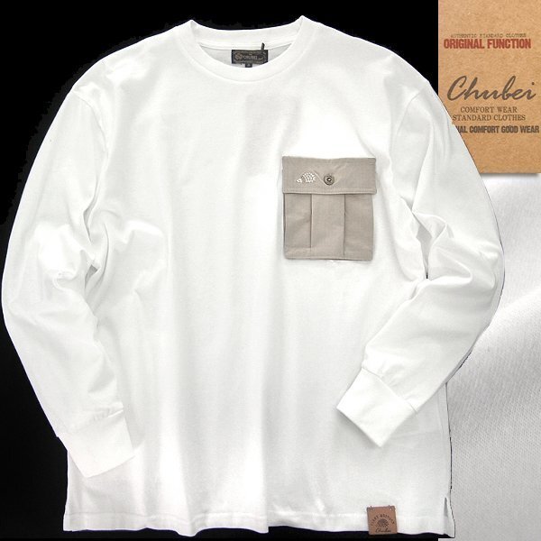 > 新品 チュウベイ リップストップ ポケット 丸首 Tシャツ LL 白 【CH1443202_7_LL】 CHUBEI カットソー ハリネズミ 長袖 クルーネック