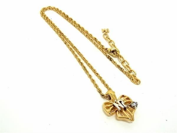 - ■美品■ NINA RICCI ニナリッチ ラインストーン リボン ネックレス ペンダント アクセサリー レディース ゴールド系 DE3695