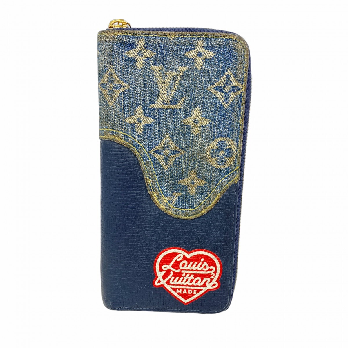 - 【5md3924】ルイヴィトン 長財布 モノグラム・デニム トリヨン/NIGOコラボ ジッピーウォレットヴェルティカル M81107 ネイビー