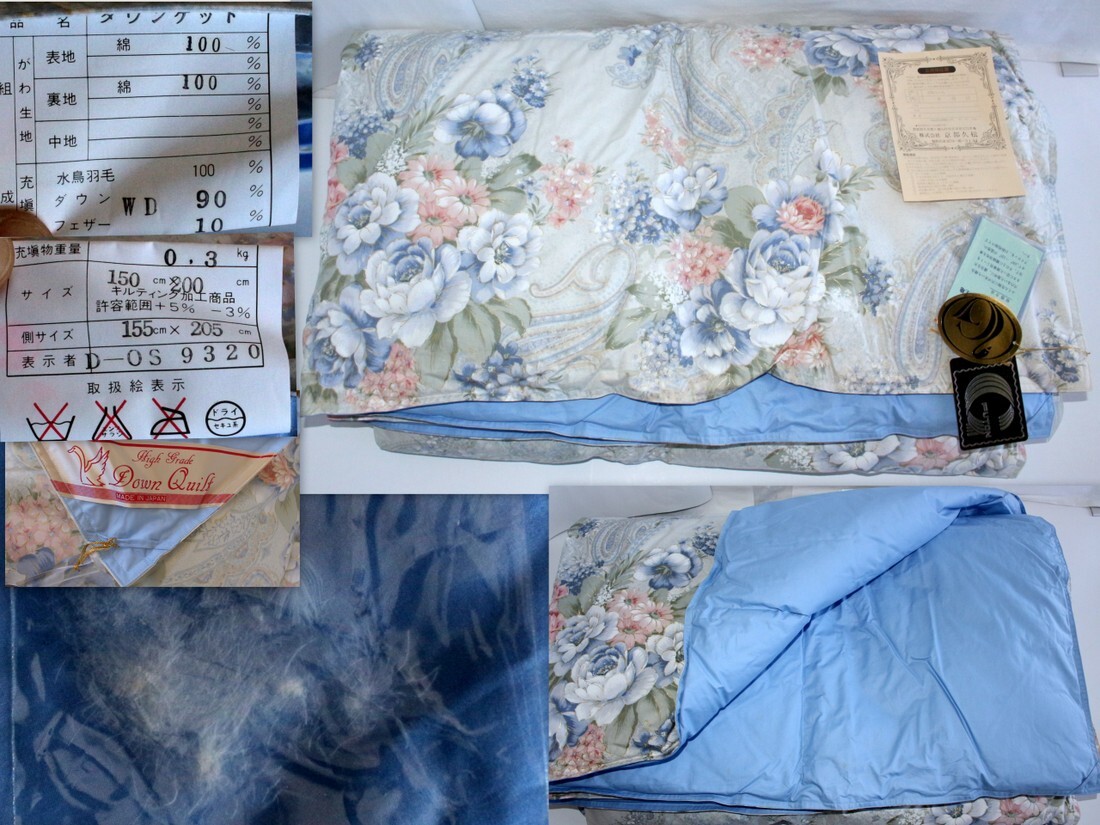 - 1515/未使用/ダウンケット 羽毛肌掛け布団 150x200cm 詰めもの重量0.3kg ※ダウン90% 表・裏地綿100% 羽毛布団