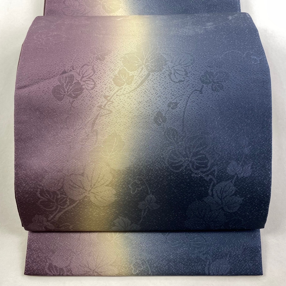 - 袋帯 秀品 ぼかし柄 地紋 銀通し 紺色 全通 正絹 【中古】