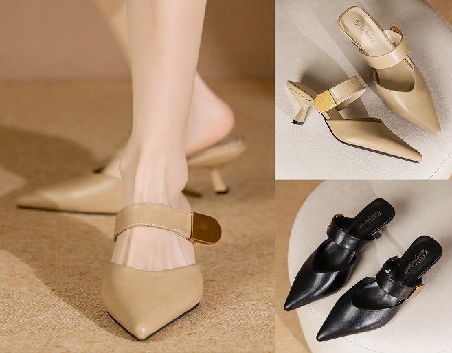 - 【高品質】全2色 ビーチサンダル ミュール とんがりトゥ 無地 sweet系 35 ベージュ