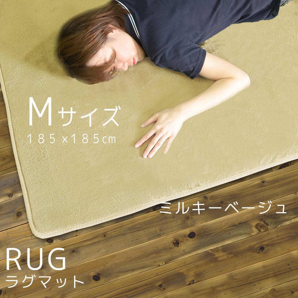 - ミルキーベージュ ラグマット M 洗える マット 上質 ラグ カーペット 約2畳 185×185cm 耐熱加工 オールシーズン対応 滑り止め付