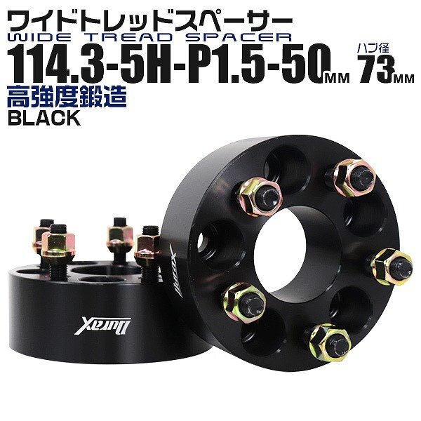 > Durax正規品 ワイドトレッドスペーサー 50mm 114.3-5H-P1.5-H73ナット付 黒 ホイール スペーサー ワイトレ 2枚セット トヨタ ホンダ マツダ