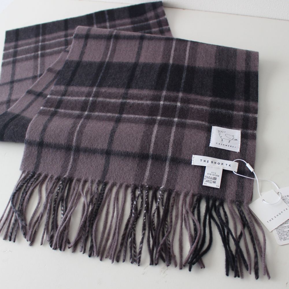 - 新品タケオキクチ THE SHOP TK カシミヤ混 チェック柄 マフラー 男女兼用 メンズ レディース ブラック×モカグレー系