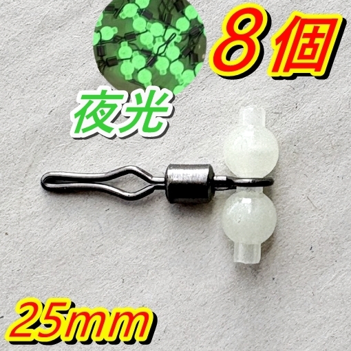 - 送料無料 8個Set☆自動 ハリス止め 夜光 サルカン 三又 スイベル 回転 スナップ☆胴付き 仕掛け 夜光玉☆カワハギ ハゼ キス☆大サイズ
