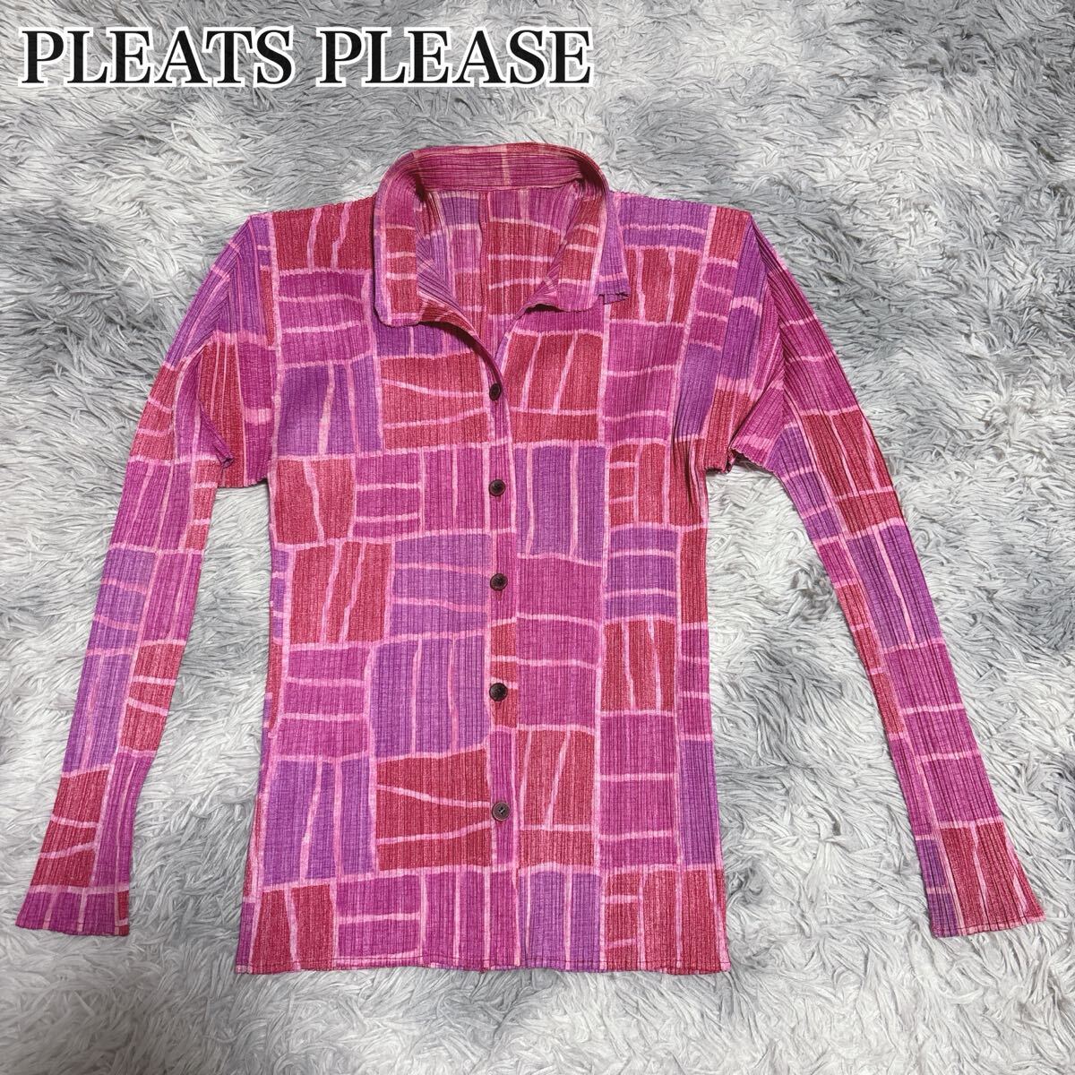 > 状態良 PLEATS PLEASE ISSEY MIYAKE プリーツプリーズ イッセイミヤケ シャツ トップス ブラウス 長袖 柄 レディース