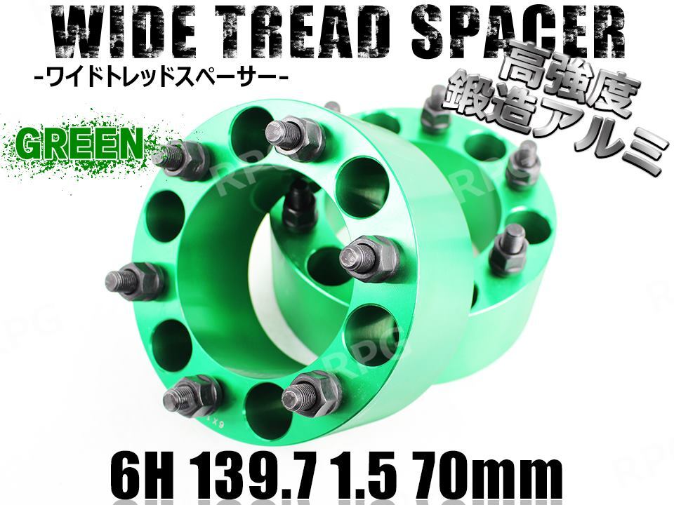 - FJクルーザー 15系 ワイトレ 6H 2枚組 PCD139.7-1.5 70mm ワイドトレッドスペーサー (緑)