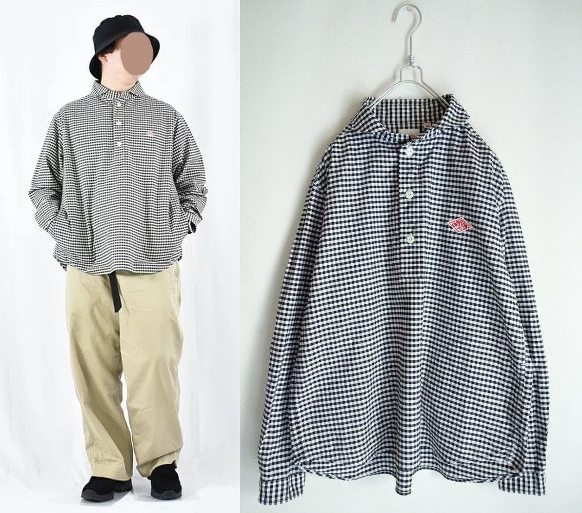 - DANTON ☆ギンガムチェック ショールカラー プルオーバーシャツ 40 日本製