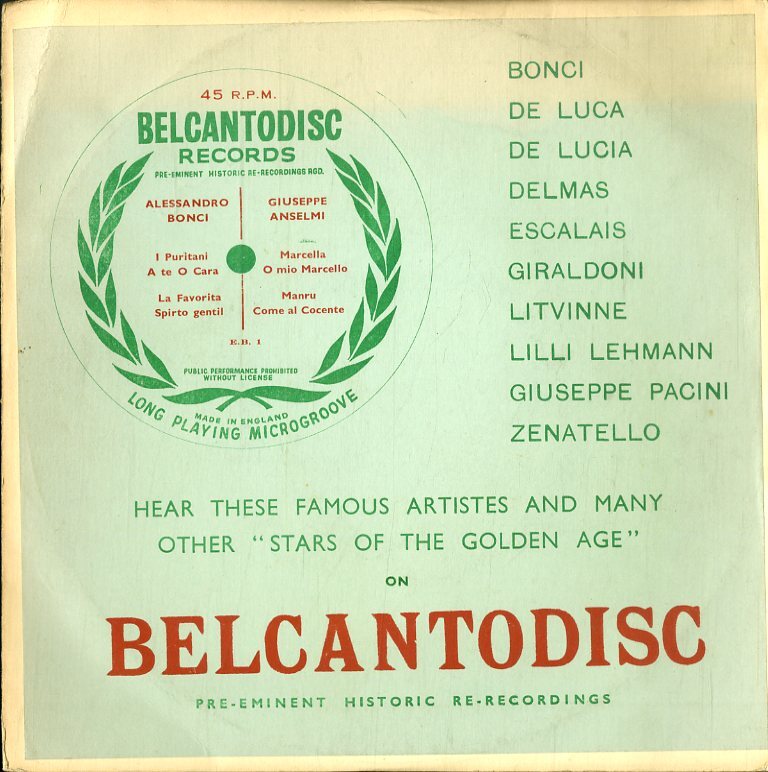 C00149660/8インチ/アレッサンドロ・ボンチ/ジュゼッペ・アンセルミ「I Puritani A Te O Cara / Marcella O Mio Marcello」