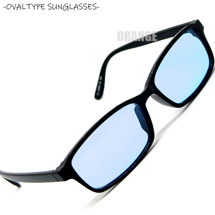 - 送料無料 オーバル型 サングラス スクエア メンズ レディース UVカット ブルー ライトカラーレンズ 伊達メガネ 伊達眼鏡 おしゃれ 新品☆