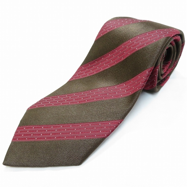 - #ae エルメネジルドゼニア Ermenegildo Zegna ネクタイ 茶 エンジ 白 レジメンタル ドット シルク イタリア製 メンズ [938585] k01