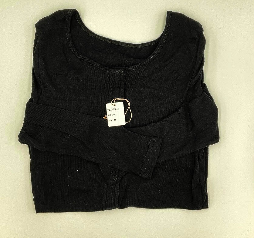 - CR16700 IBK⑦【特価】新品 術後インナー M 1枚 ブラック 綿100% シンプル 長袖 ポケット レディース