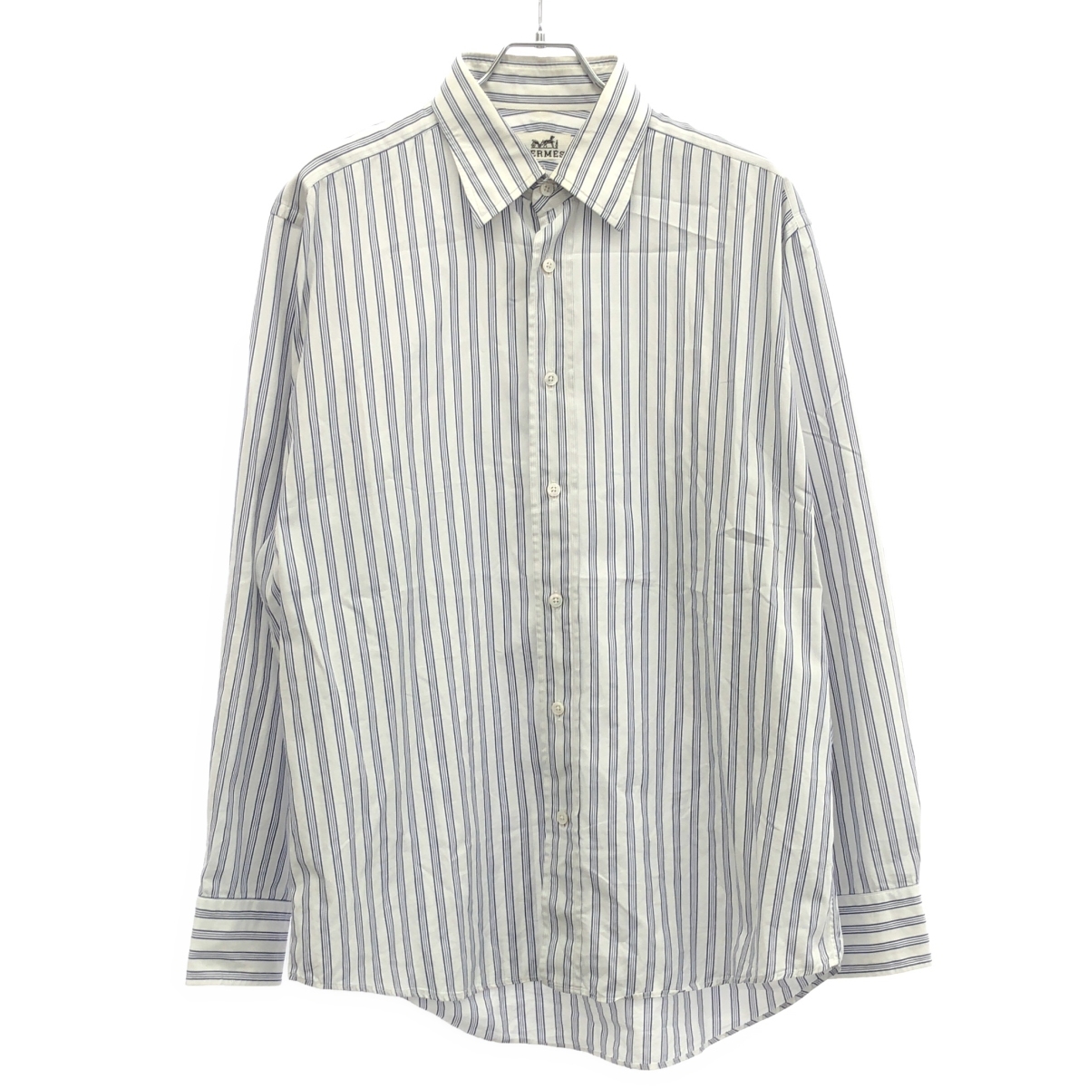 - HERMES エルメス セリエボタンストライプシャツ ホワイト×ブルー 42-16 1/2 ITTRKDYM6XLW