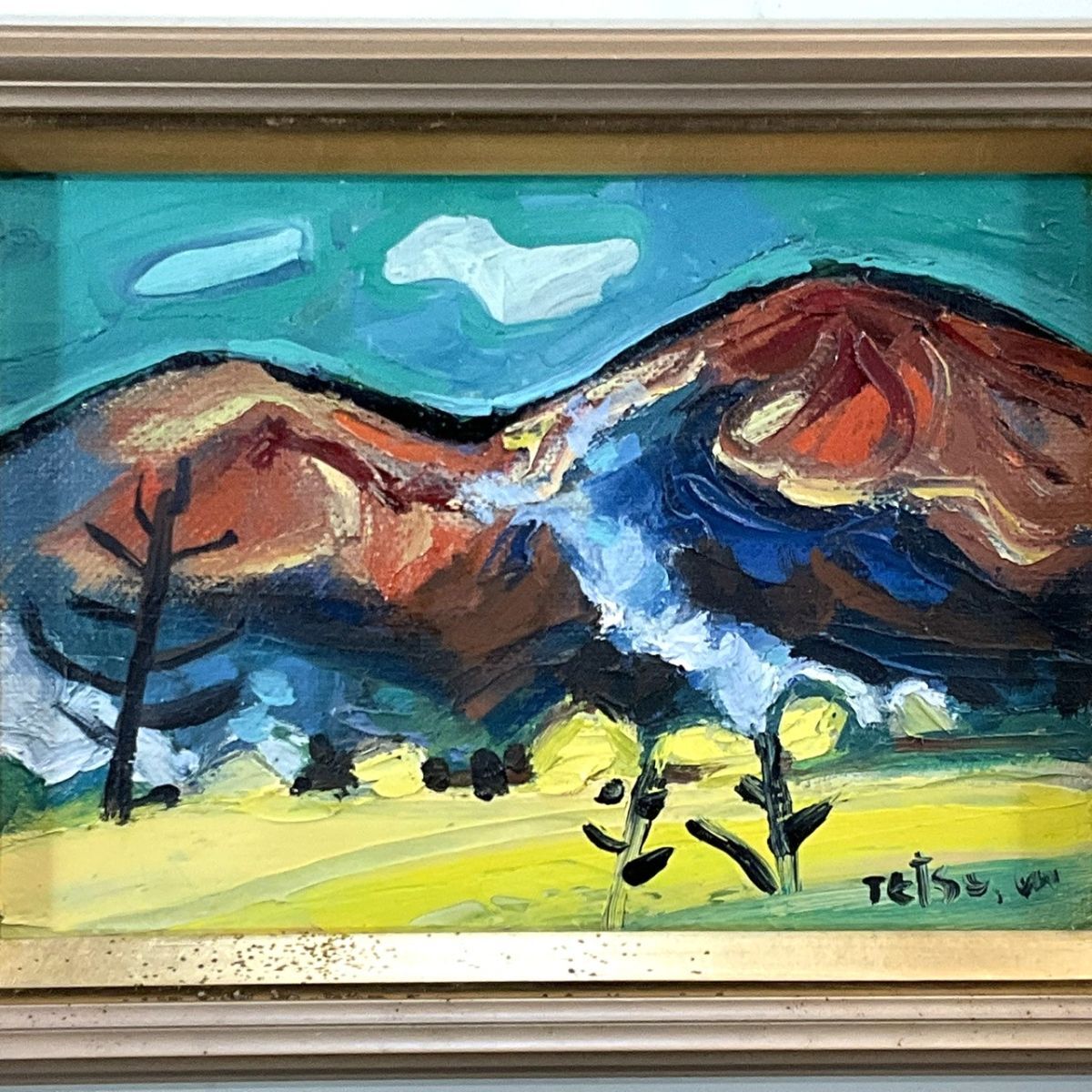 真作■油彩■真野鉄也■『えびの高原』■美術文化協会会員■額付絵画