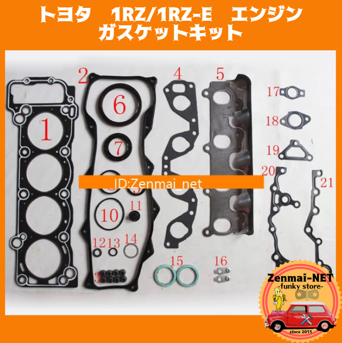 > B150 トヨタ 1RZ/1RZ-E型エンジン ガスケットキットセット ハイエースバン/ワゴン H100系など レストア・オーバーホールに