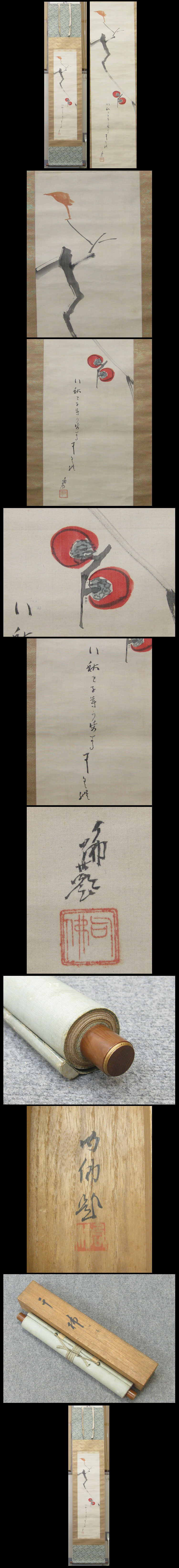 - 【心庵】掛軸 大谷句佛(光演)絹本柿図/肉筆 共箱 真作 B201