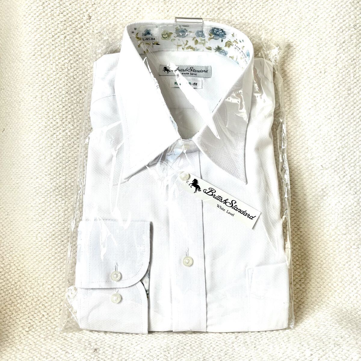 > 未使用 British Standard ブリティッシュスタンダード レギュラーフィット 形態安定 ワイシャツ 41-84 綿 ポリエステル L 白 花柄 長袖
