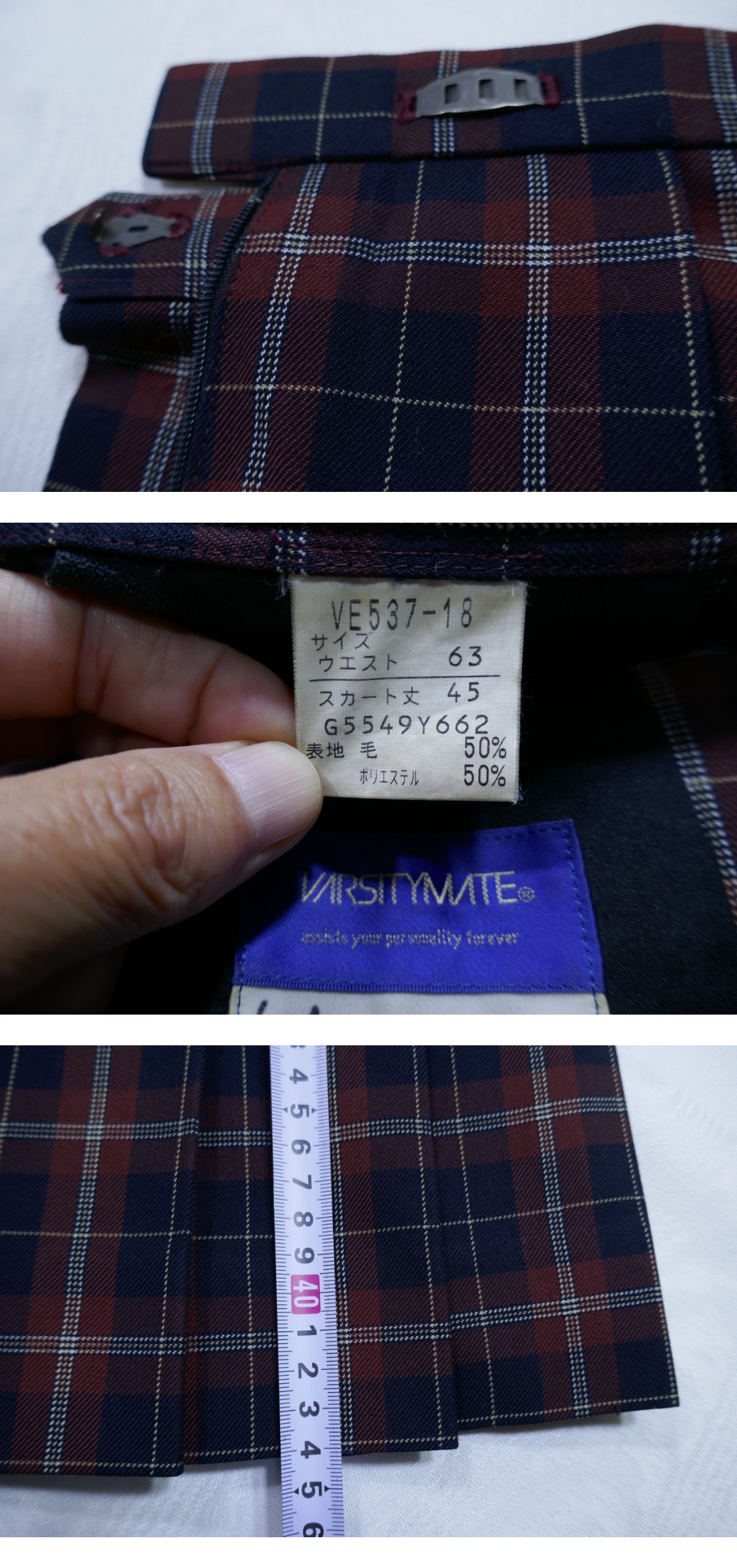 - 8 千葉県 日本体育大学柏高校 ブレザー(L) 冬チェック柄スカート(W63) 校章付き トンボ バーシティメイト(検 学校 高等学校 制服 学生服 JK