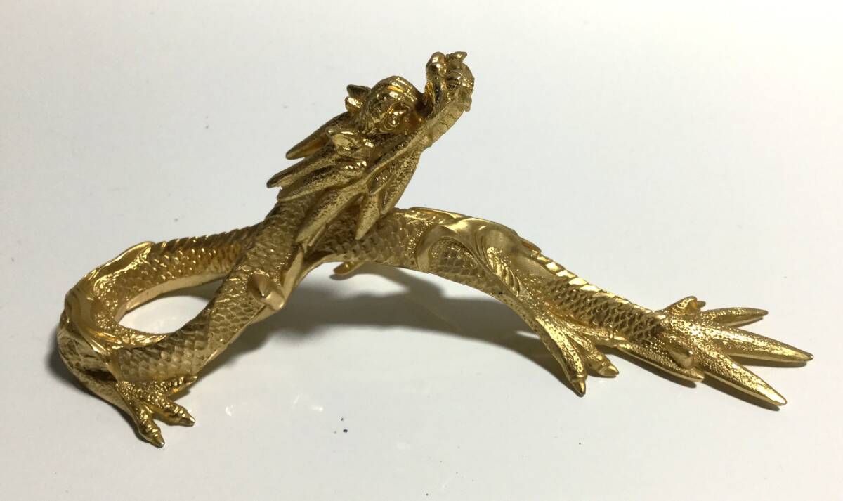 - 金属製 置物 ペーパーウエイト 黄金龍 龍 文鎮 頭のみ取り外し可 金属工芸 ※中古品