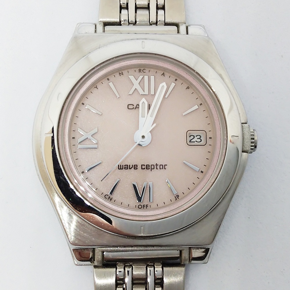 > B25-2003 CASIO カシオ LWQ-10DJ-4A1JF ウェーブセプター レディース デイト 3針 SS タフソーラー 電波 稼働 社外ベルト 動作確認済 箱付