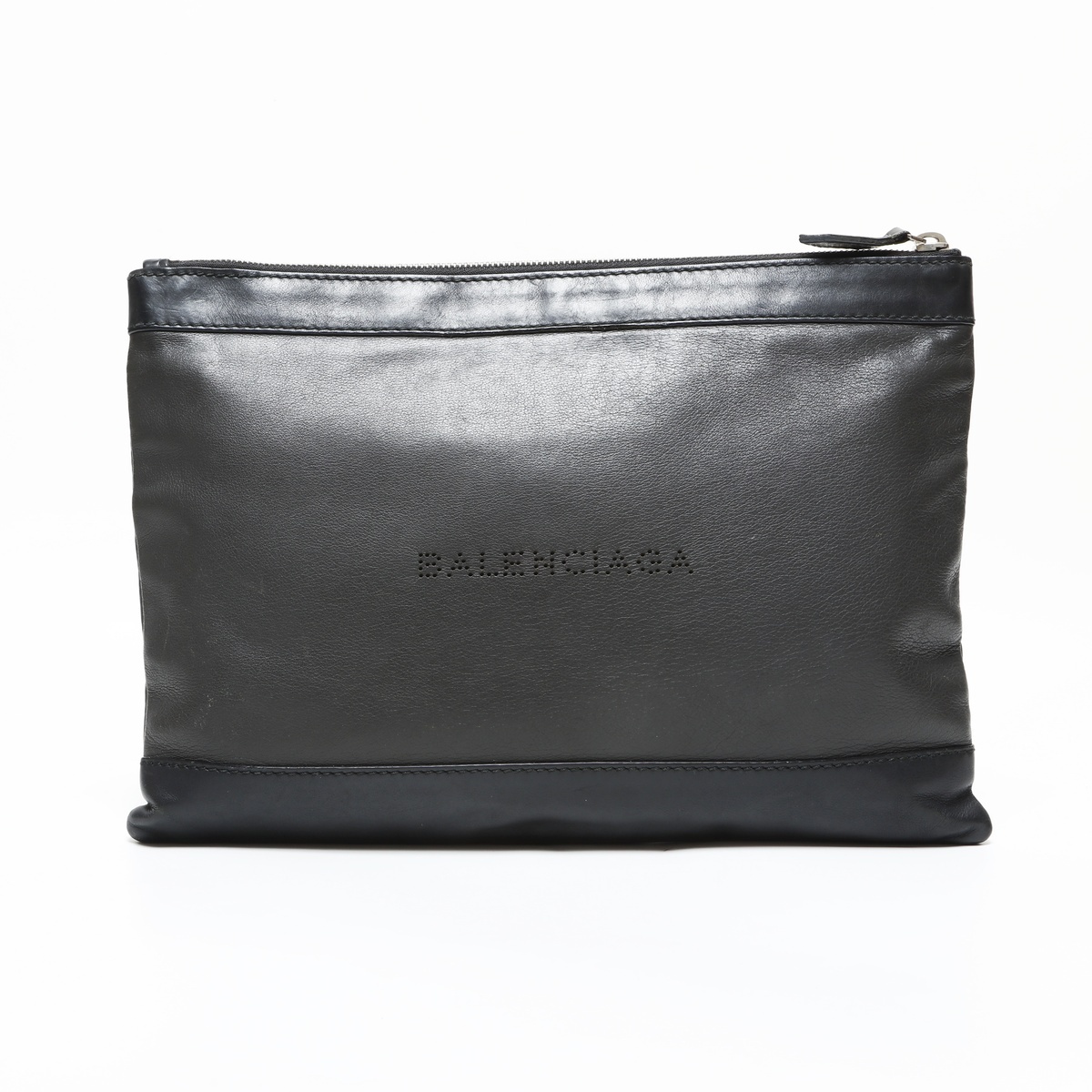 - バレンシアガ BALENCIAGA クラッチバッグ M レザー クリップ ロゴ ブラック