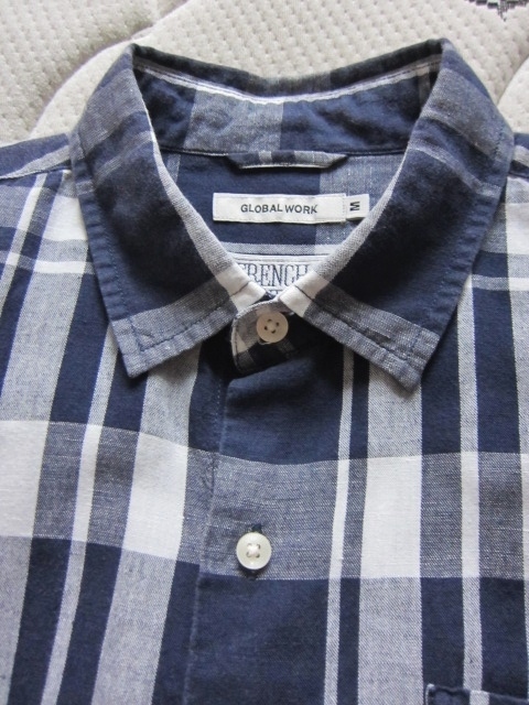 - 綺麗め メンズ GLOBAL WORK 7分袖 シャツ 綿 麻 サイズM トップス Brand 美品 ブランドシャツ FRENCH LINEN COTTON グローバルワークス 特