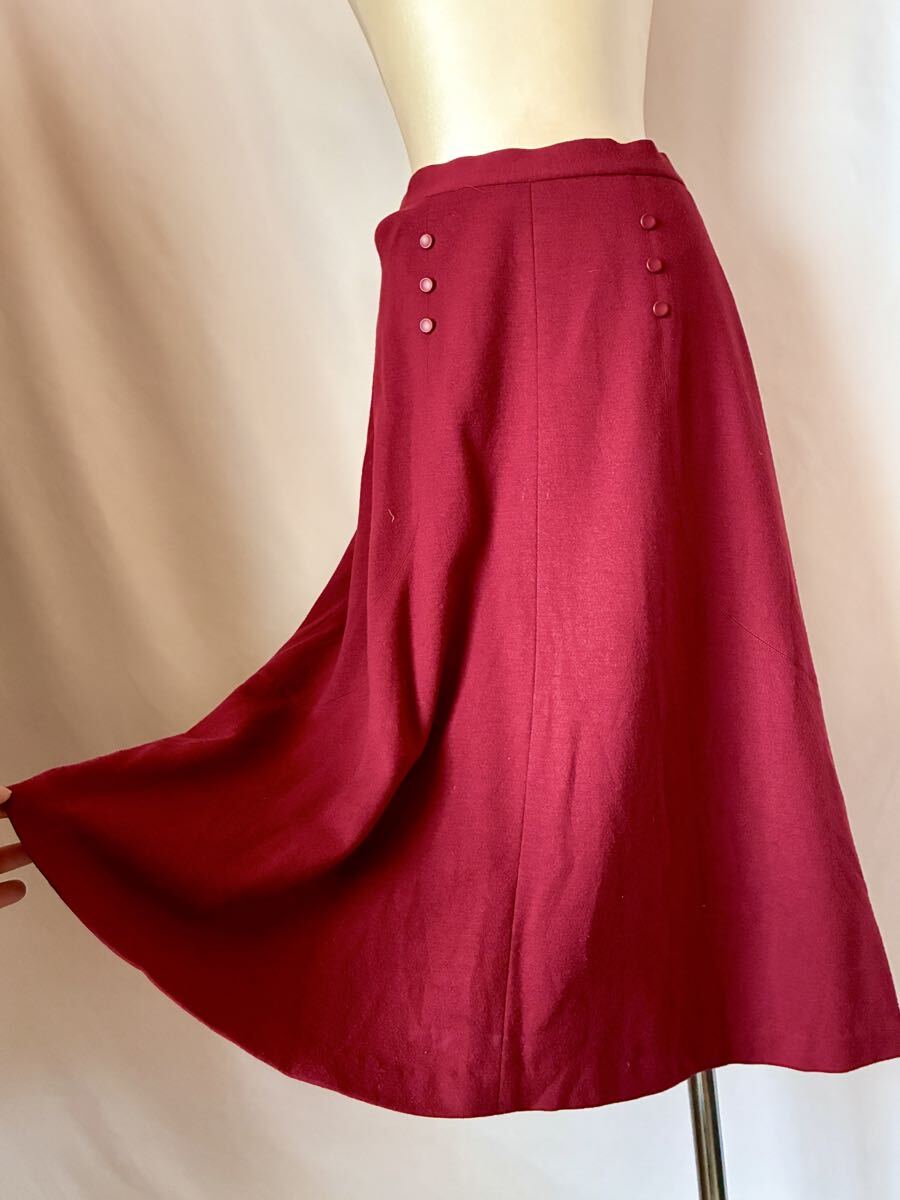- 秋冬用LADY RENOWNレナウンロングフレアースカートL-XL赤系ボルドー毛ウール100%♪着丈75cm(M)