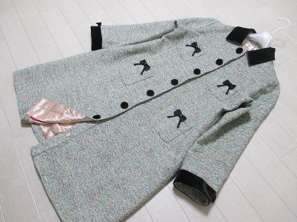 - スーパービューティー*Super Beauty 装飾デザインツイードコート/ベロア襟袖リボン 44