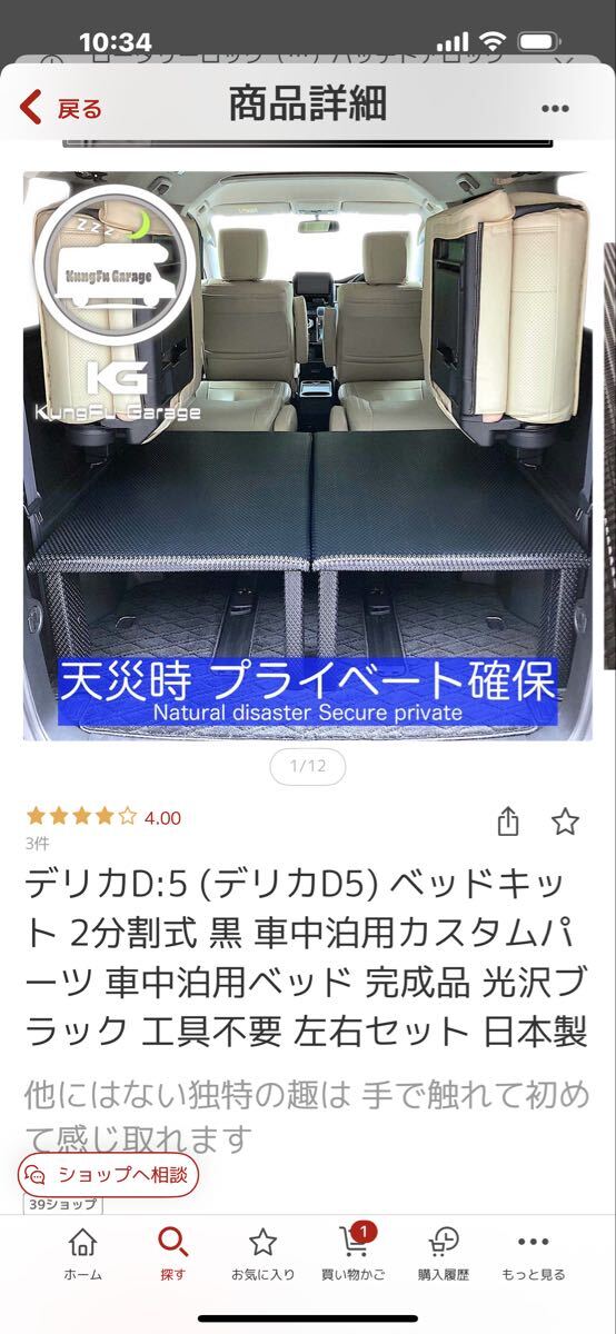 > デリカD:5 (デリカD5) ベッドキット 2分割式 黒 車中泊用カスタムパーツ 車中泊用ベッド 完成品 光沢ブラック左右セット   中古品