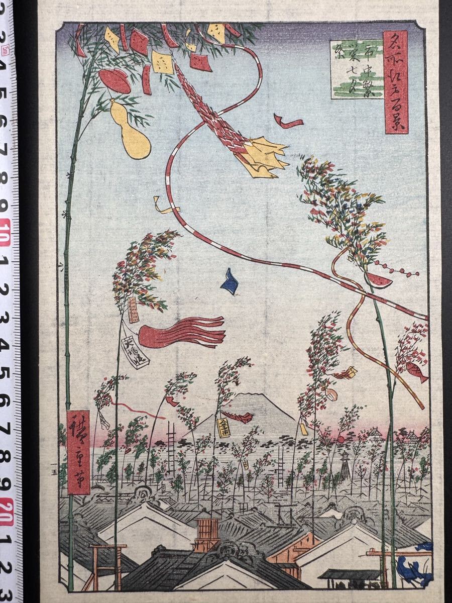 - 【真作】本物浮世絵木版画 初代 歌川広重「名所江戸百景 市中繁七夕祭」江戸期 名所絵 中判 錦絵 保存良い