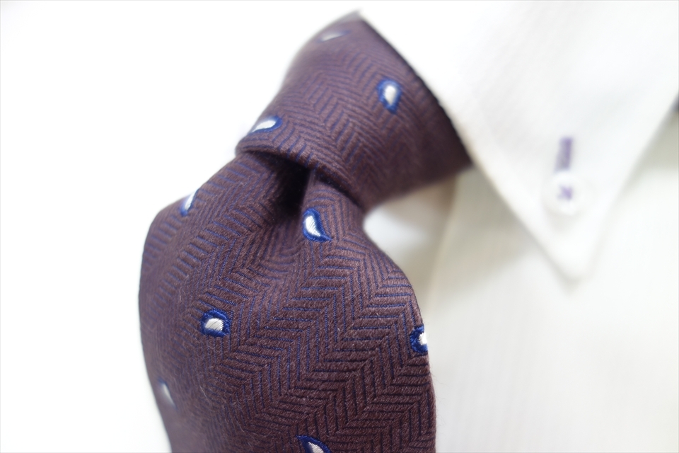 - 8685◆ブリックハウス BRICK HOUSE ペイズリー&ヘリンボーンストライプ柄 シルクウールネクタイ