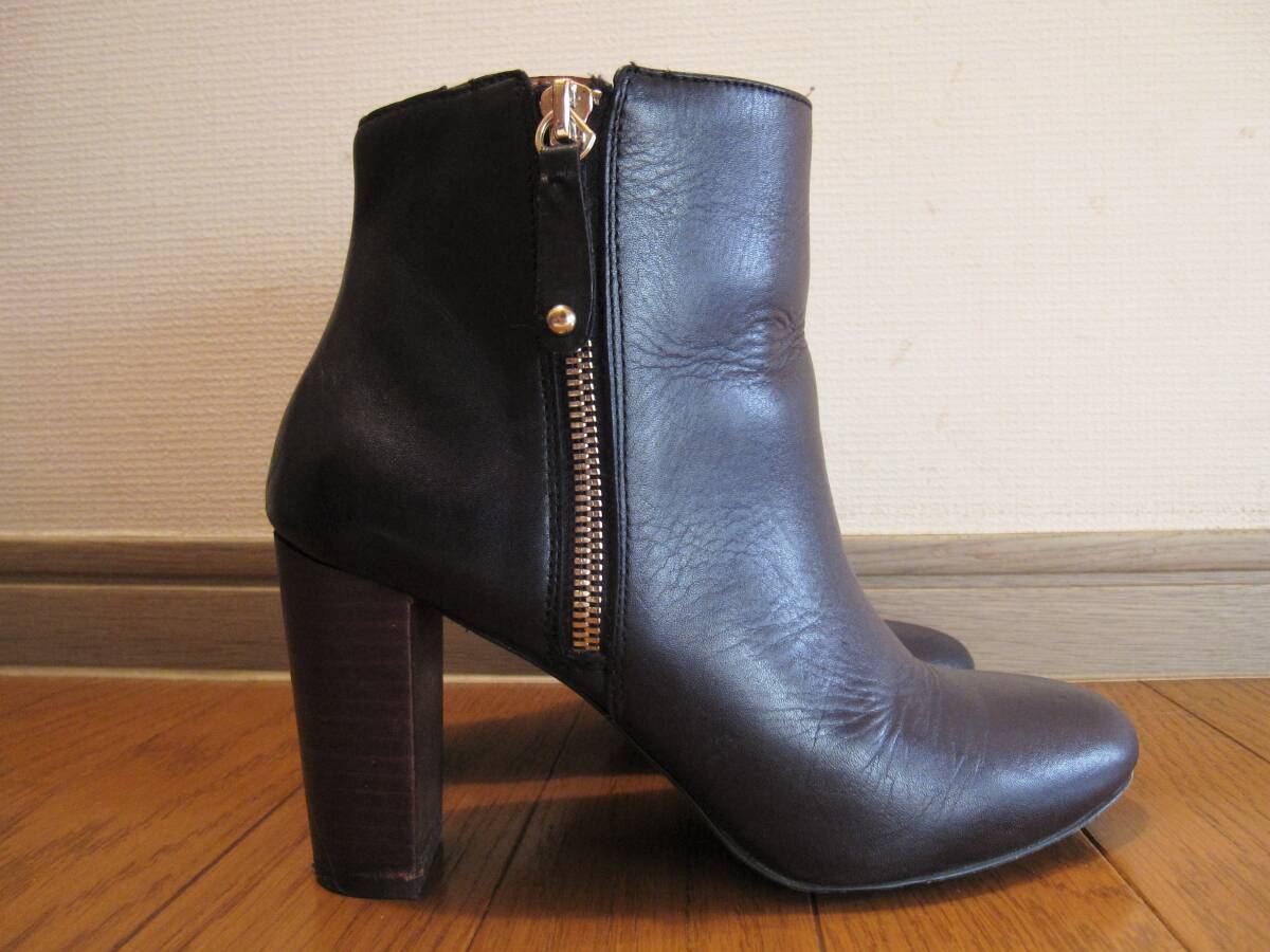 - 【 ZARA BASIC 】 ★美品★ショートブーツ 本革 レザー ジッパー ブラック 黒 38