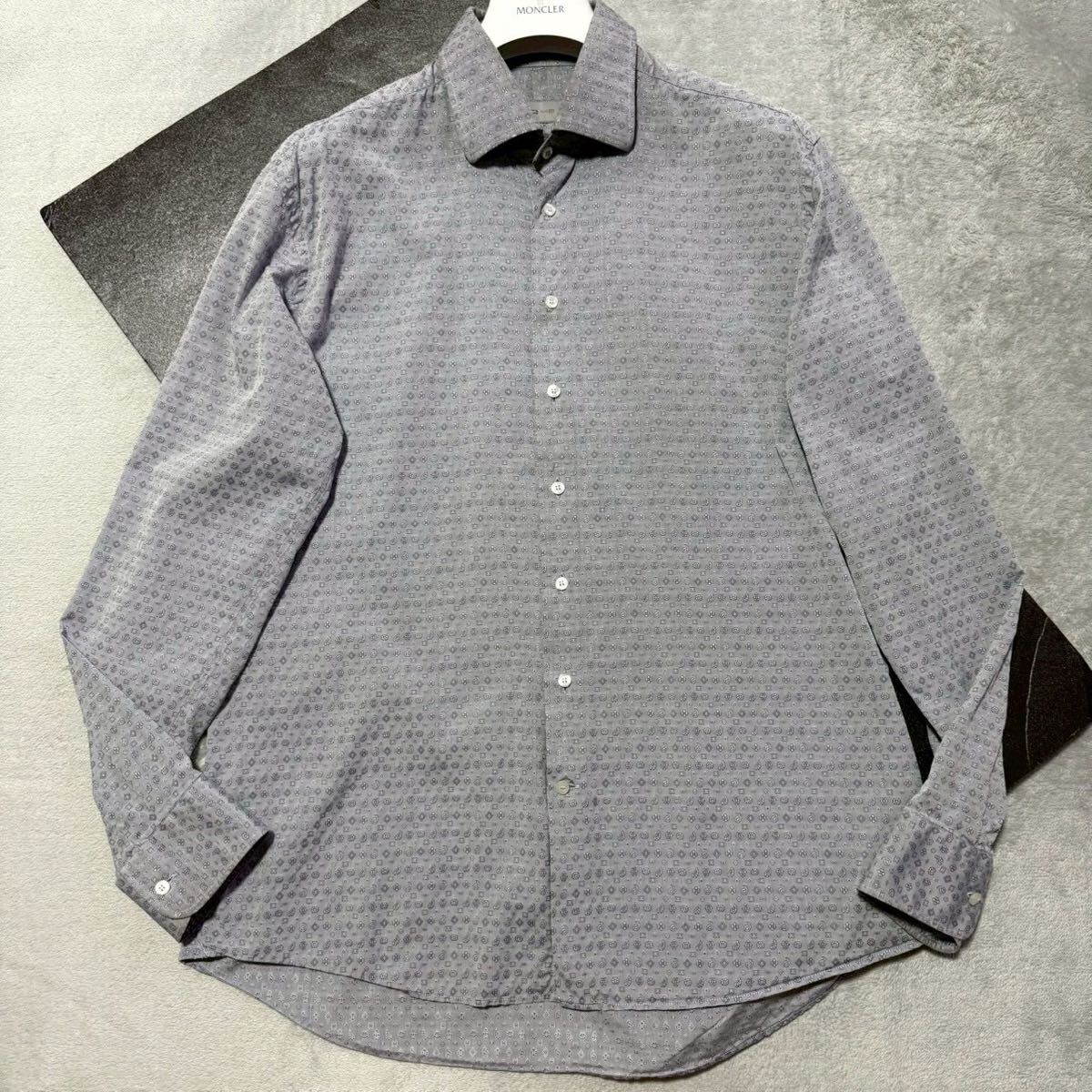 > L相当/サイズ48★ETRO エトロ ペイズリー柄 総柄 長袖シャツ ドレスシャツ トップス コットン ロゴボタン メンズ グレー ITALY製