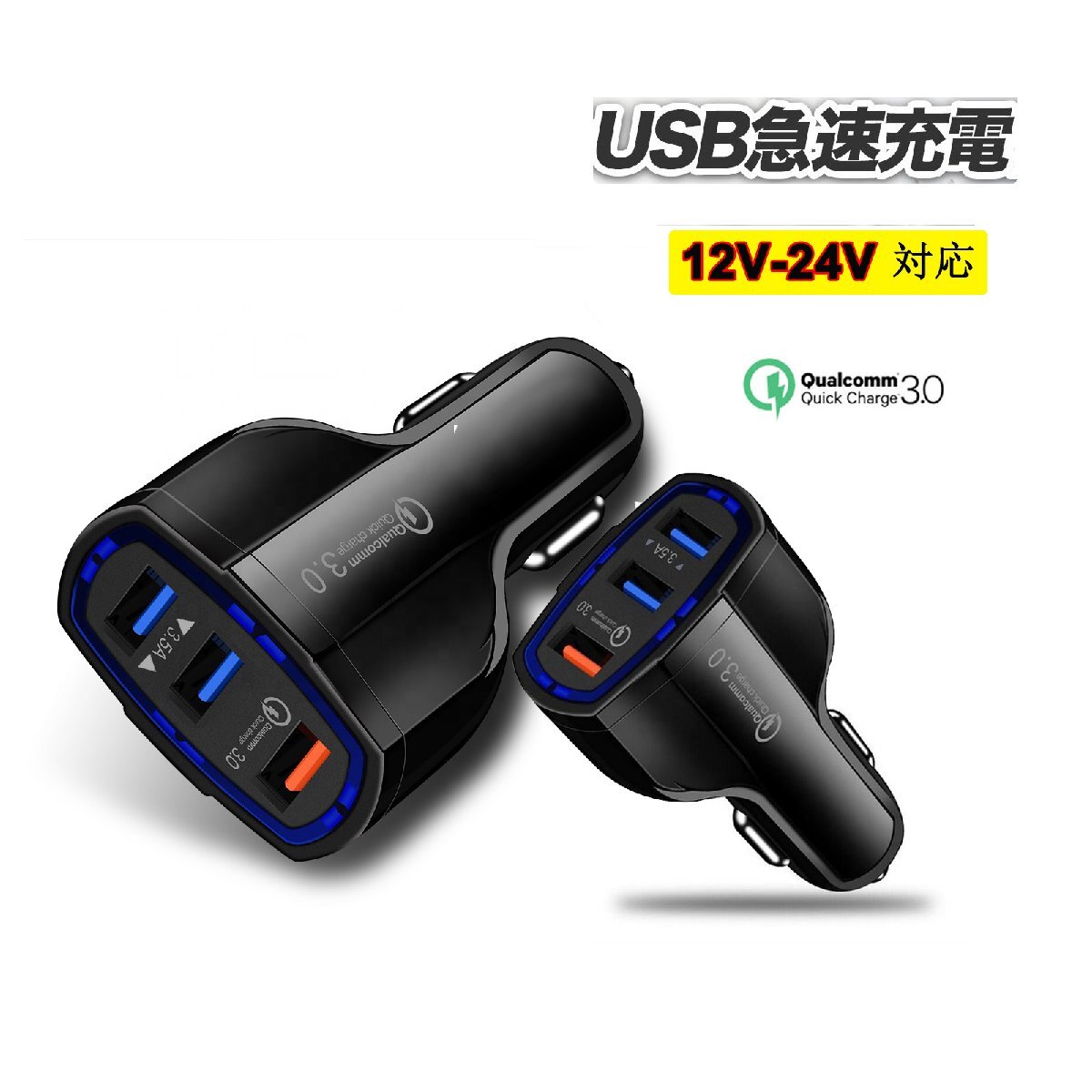 - DC12-32V 車対応最大MAX7A USB3ポート カーチャージャー 黒