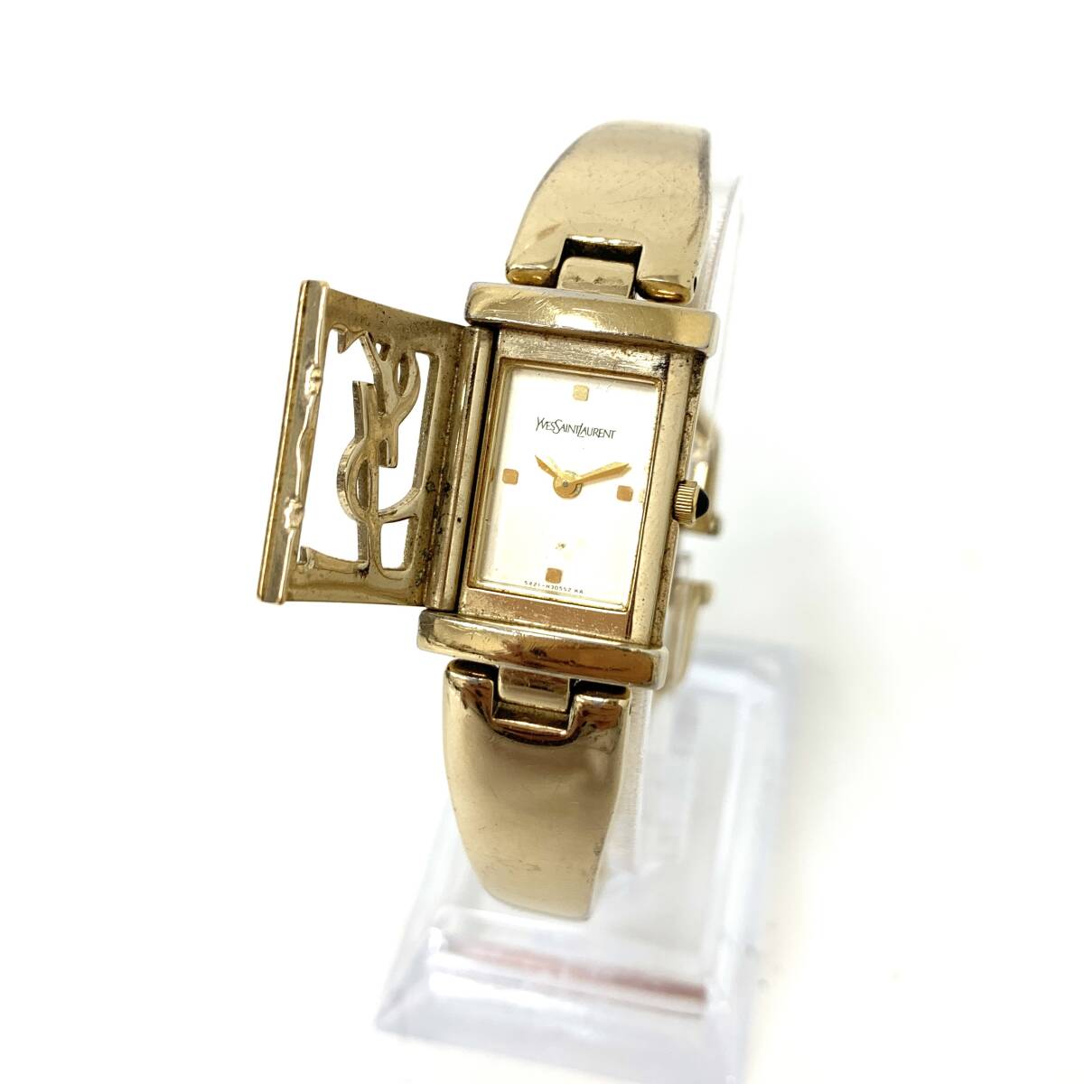 - Z1248△ 1円~ YVESSAINTLAURENT イヴサンローラン 40周年 バングルウォッチ GP×SS QZ ゴールド文字盤 レディース 腕時計 稼働動作確認済